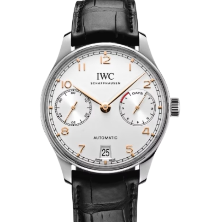 IWC 포르투기즈 Automatic 42mm IW500704 Steel Black Leather Strap Arabic Numerals Silver Dial[ZF]